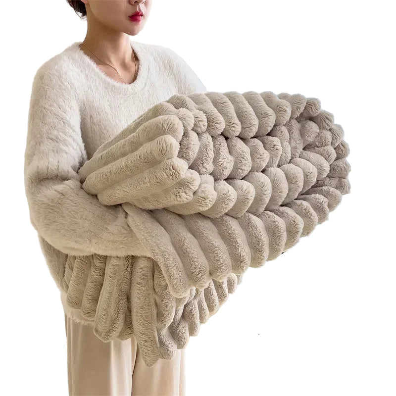 Die BunnyVelvet Decke umschmeichelt Sie mit ihrer weichen Textur und hält Sie kuschelig warm, selbst an den kältesten Abenden. Perfekt für entspannte Stunden auf der Couch oder im Bett.